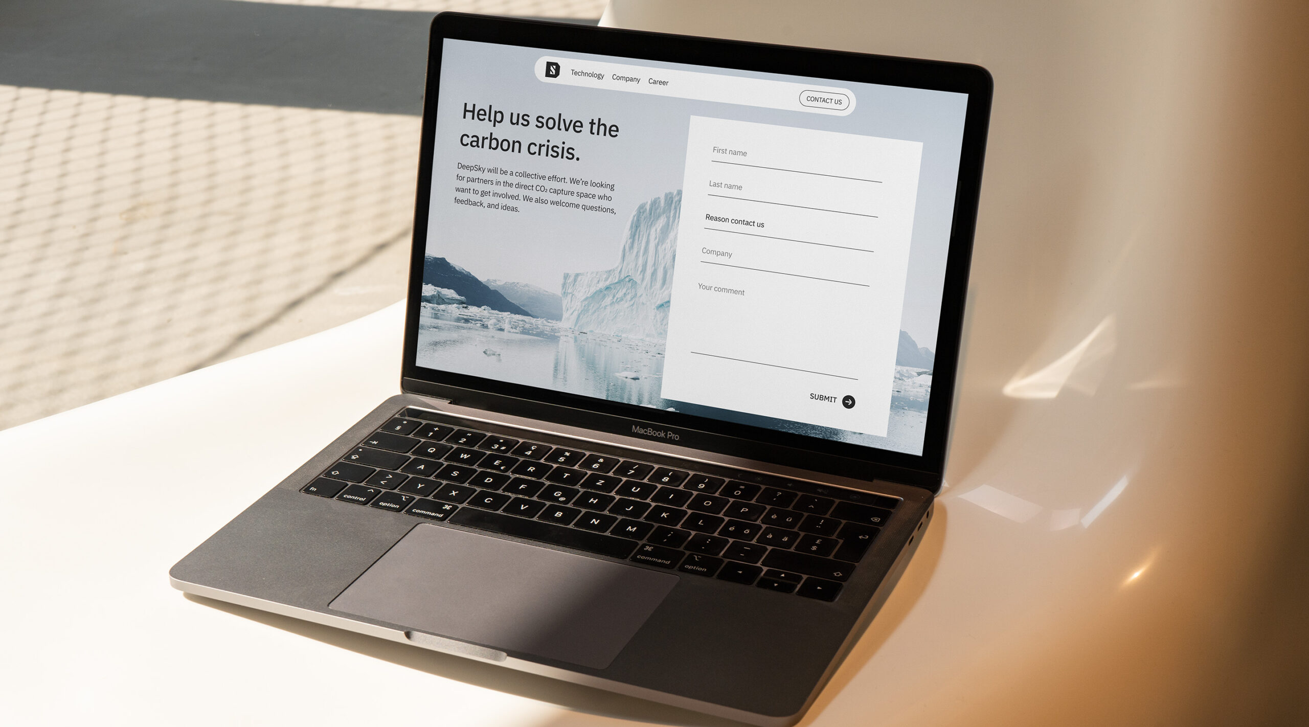 Our job was to distill a complicated problem and an even more complex solution into short, digestible beats. We pored over decks and documents to understand the reasons behind the carbon collapse and the technology that made DeepSky possible. Then, our writer worked hand-in-hand with DeepSky’s leadership to nail the information architecture and copy on each page.